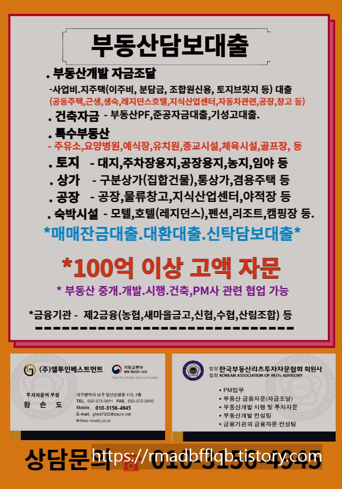 대구 경북 토지담보대출은 제2금융권으로 최대한도 최적의 금리를 이용하세요 (0) | 2023.02.22 |